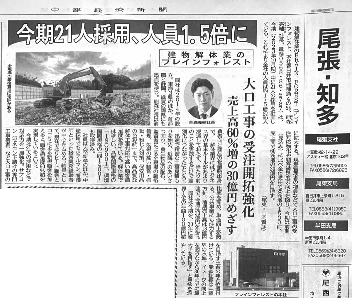 新着情報NEWS いろんな取り組み ご覧ください! 2022.11.22 中部経済新聞に掲載されました! 11月22日付中部経済… OTHER CONTENTS 品質基準QUALITY STANDARDS 解体工事DEMOLITION WORK 改修工事・新設工事REPAIR / NEW CONSTRUCTION WORK 施工実績CONSTRUCTION RESULTS SDGs 会社についてCOMPANY