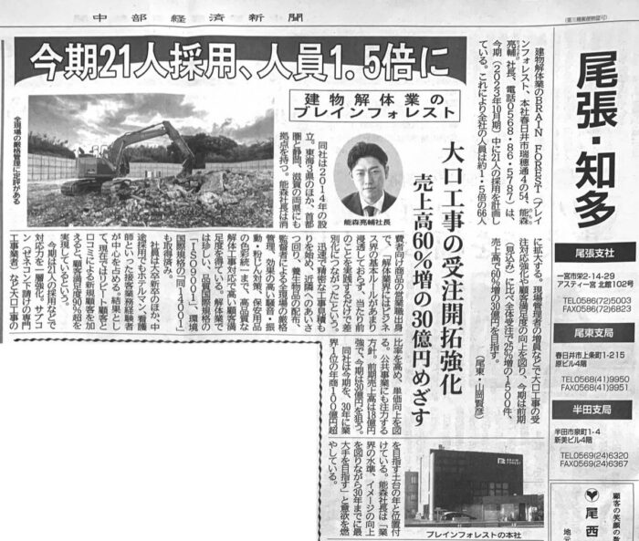 11月22日付中部経済新聞にBrainForestが掲載されました!