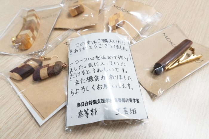 ユニフォームの御礼に手作りアクセサリーもいただきました。