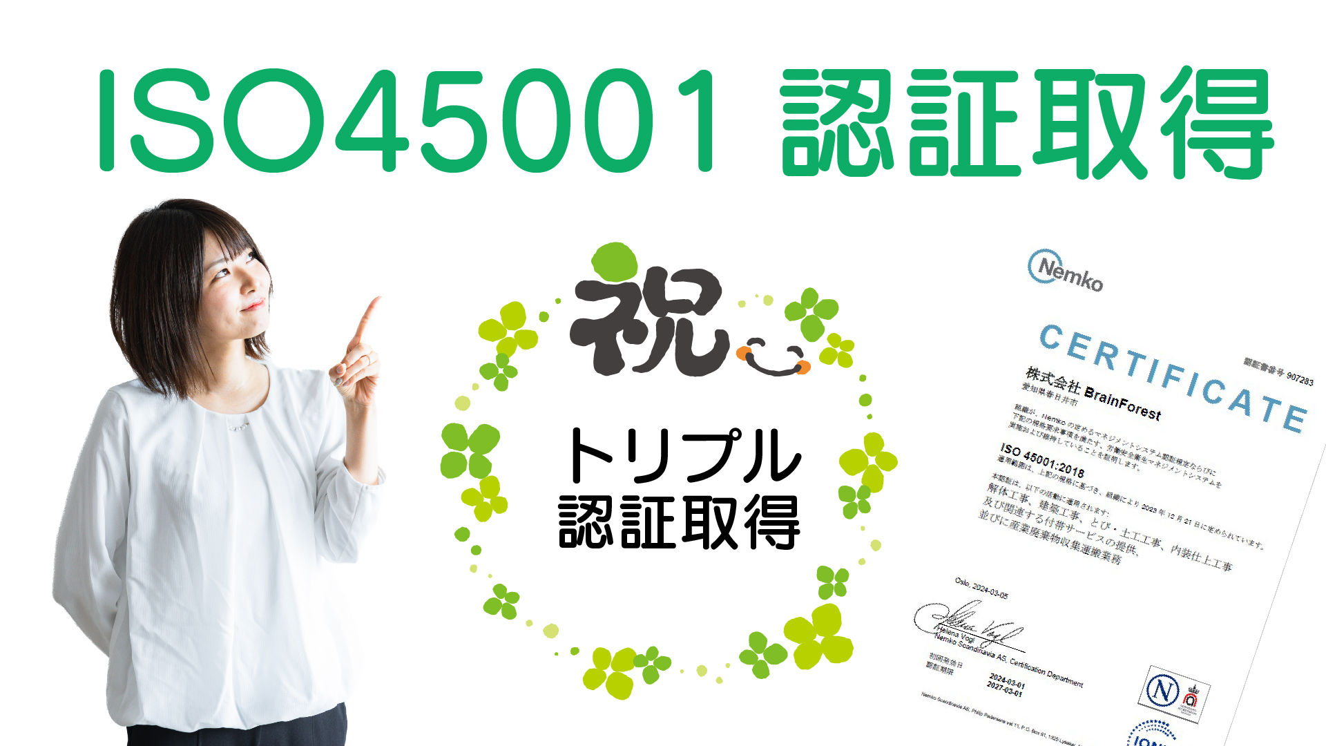 新着情報NEWS いろんな取り組み ご覧ください! 2024.03.18 神戸支店営業スタッフ募集!! 神戸支店営業スタッフを大募集! もう… 2024.03.08 ISO45001労働安全衛生マネジメントシステム認証を取得しました! BrainForestはISO45001労働安全衛生マネジメン… OTHER CONTENTS 品質基準QUALITY STANDARDS 解体工事DEMOLITION WORK 改修工事・新設工事REPAIR / NEW CONSTRUCTION WORK 施工実績CONSTRUCTION RESULTS SDGs 会社についてCOMPANY