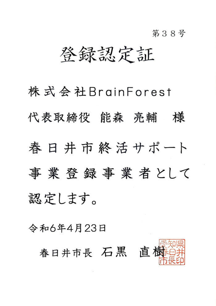春日井市終活サポート事業に事業者登録しました!
