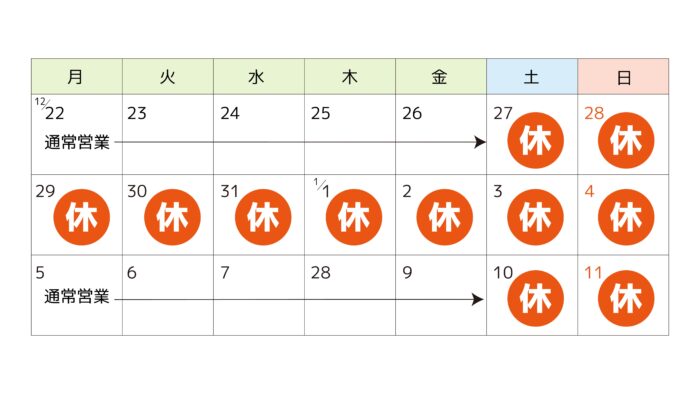 年末年始休業のお知らせ